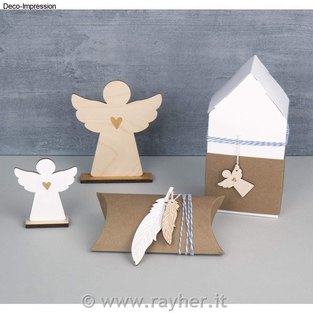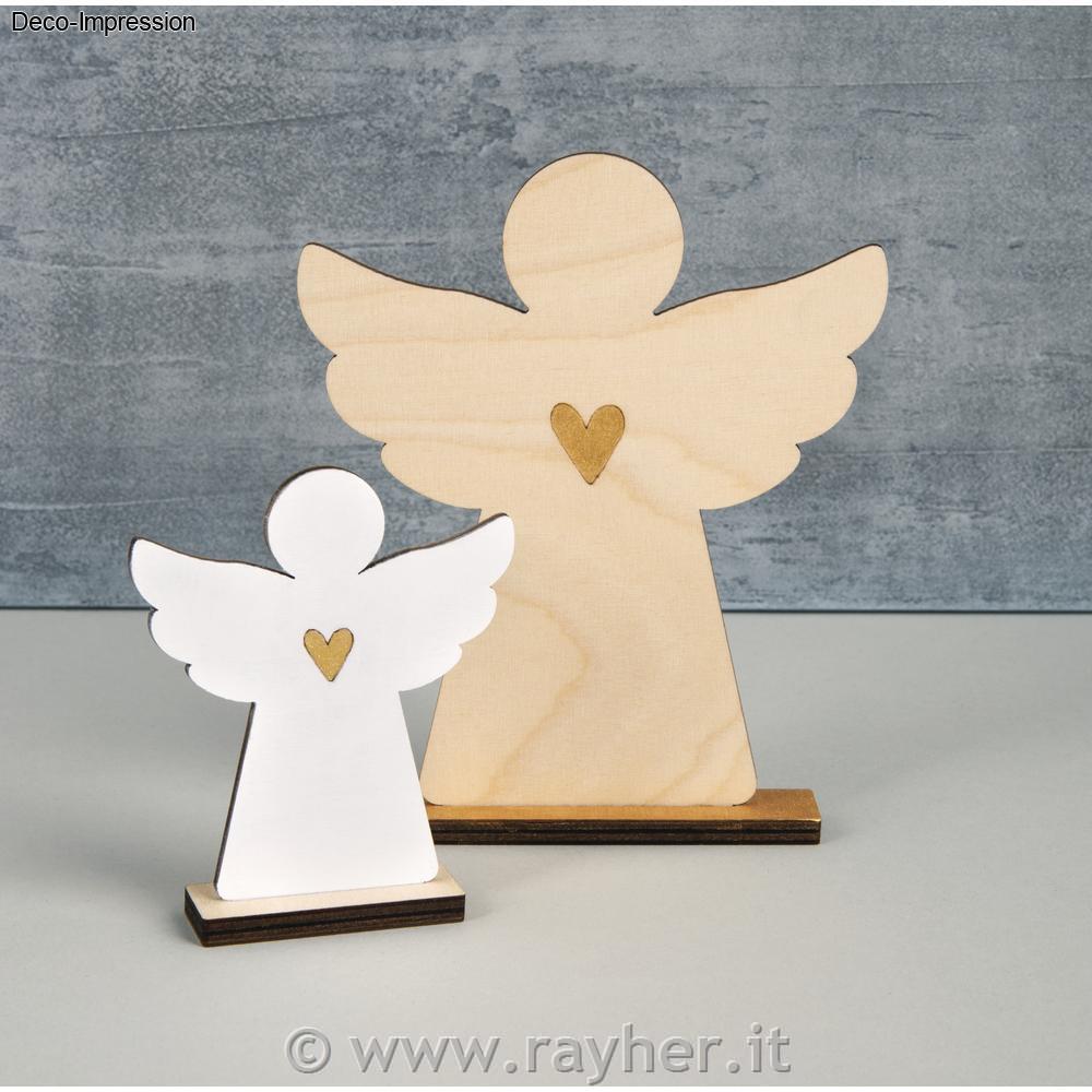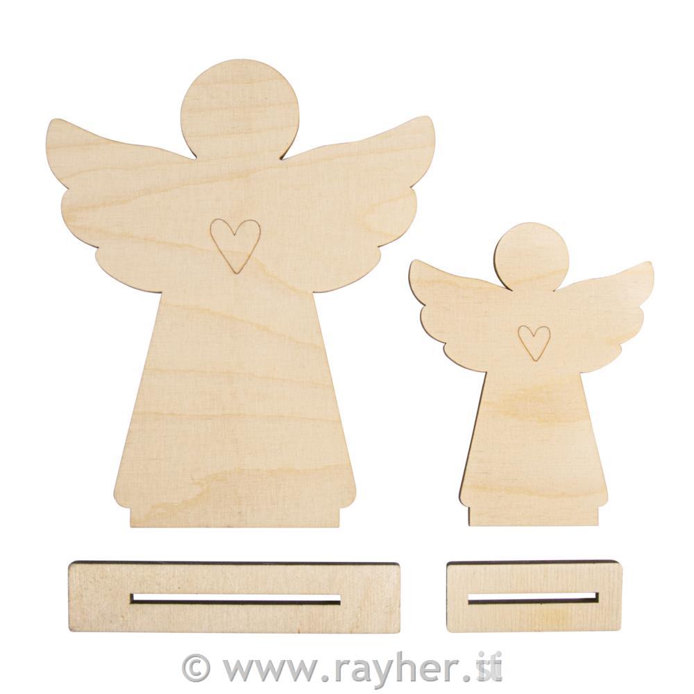 Lesena angela z dodanim podstavkom z zatičem kamor lahko angela postavite. Lahko pa jih uporabite tudi kot viseči okras. Lesena angela lahko pobarvate, jim dodate bleščice, okraske, trakove,…