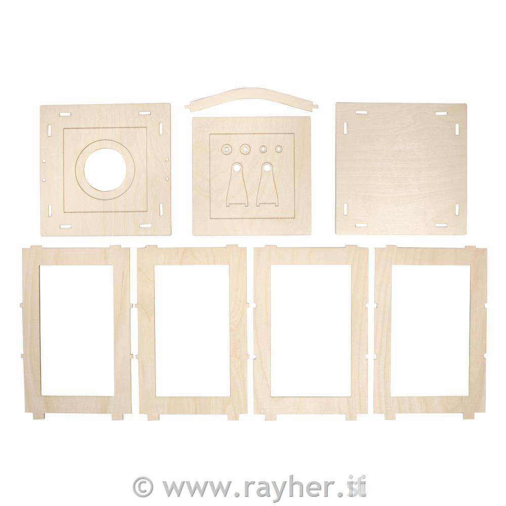 The 15-piece, high-quality wooden kit is easily assembled and glued according to the enclosed instructions and then possibly previously painted. The wood used is FSC™ certified and originates from sustainably produced, responsible forestry.