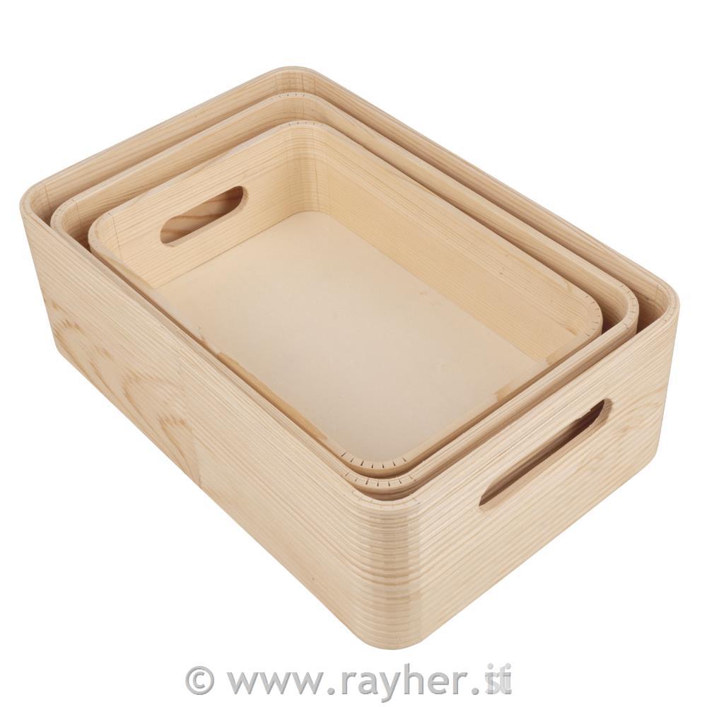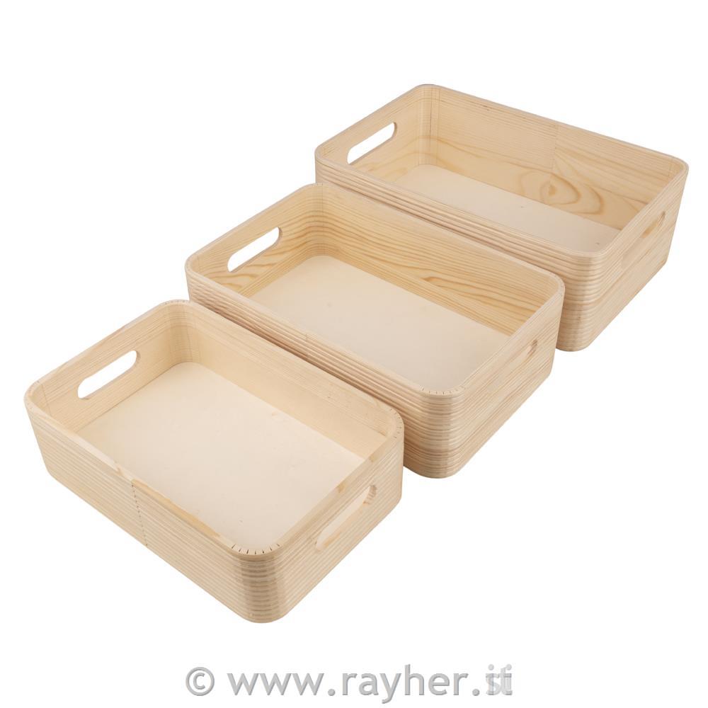 Komplet škatel z ročaji, 3-delni, iz visokokakovostnega lesa: