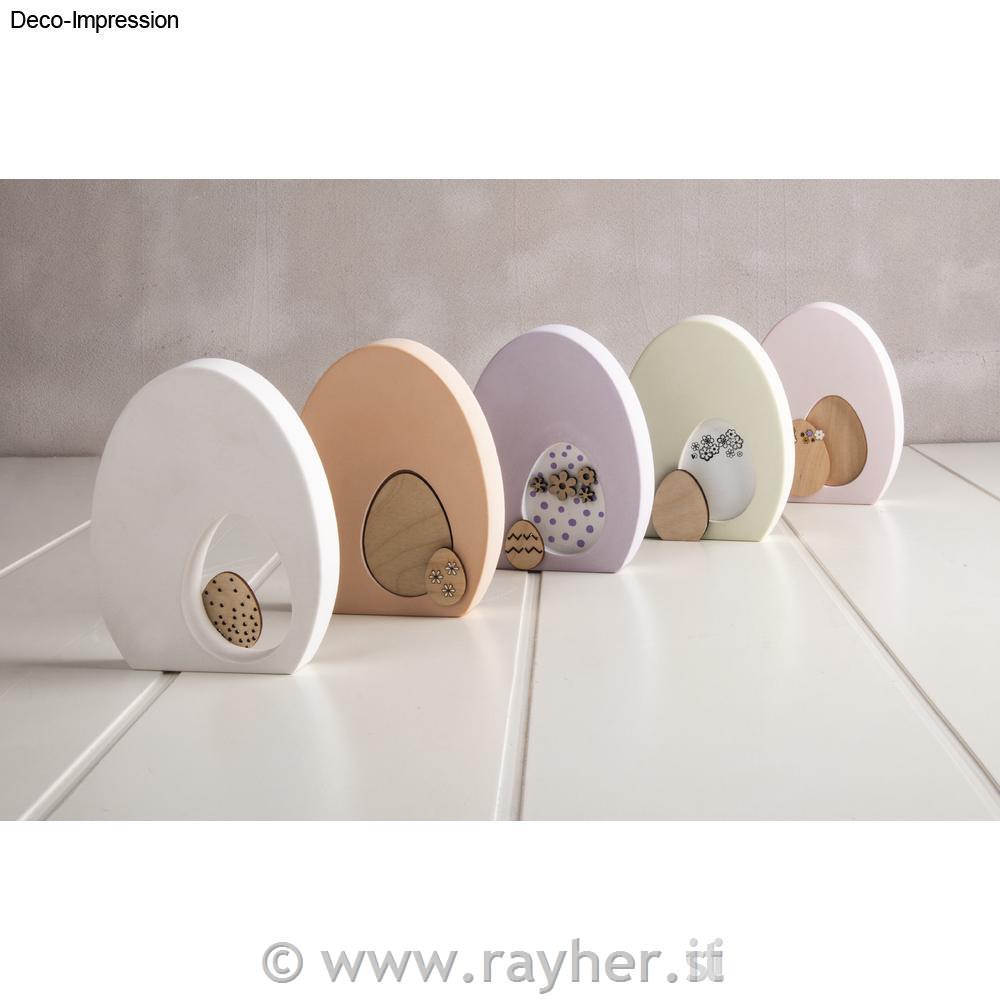 V paketu je 9 lesenih jajc dimenzije od 2 do 8cm. Nekatera jajca so filigransko obdelana, z dodatki pomladnih cvetlic ali srčkov. Lesena jajca lahko pobarvate, dodatno okrasite, vdelate v kalup, uporabite za voščila,..