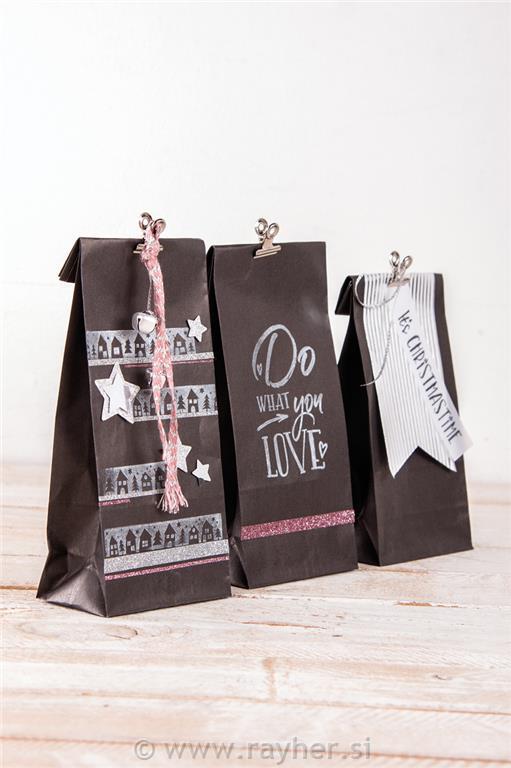 Papirnata vrečke, 10x24x6cm, 80g, 25 kosov, črne