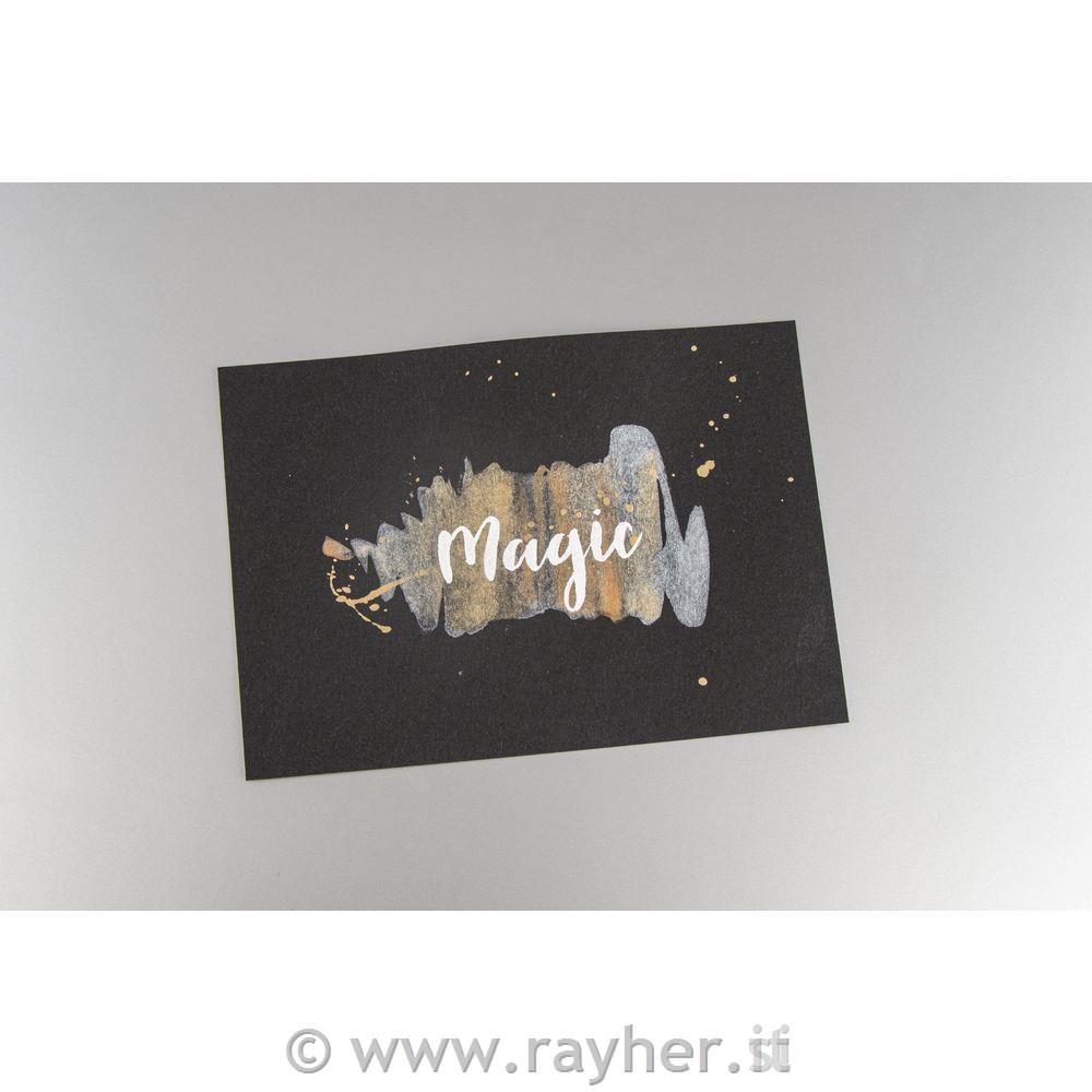 Visokokakovosten papir, 150x210 mm (A5), blok 15 listov, črn, debelina papirja 270g / m2. Mat črni papir je rahlo strukturiran, brez kislin in pH nevtralen.
