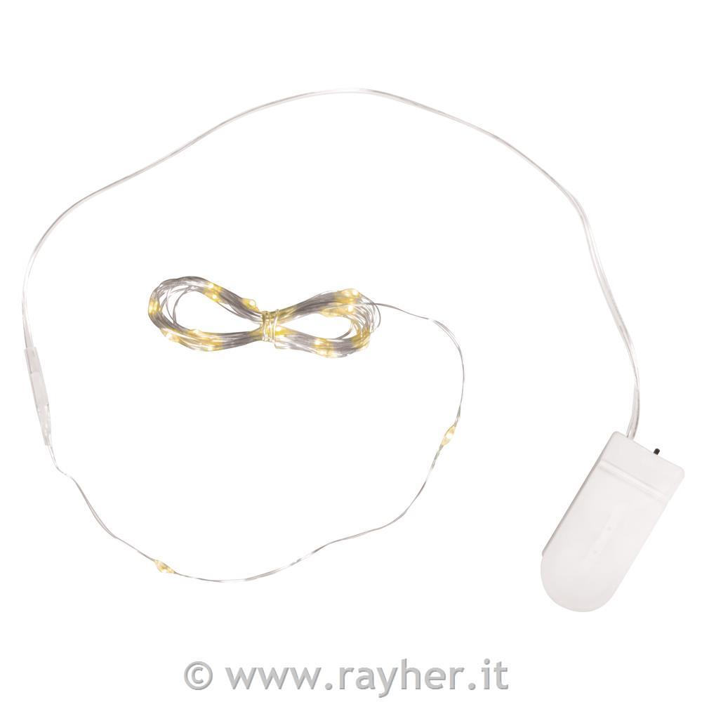 Micro catena luci LED con fil di ferro220cm, 20 faretti, box blis. 1pz