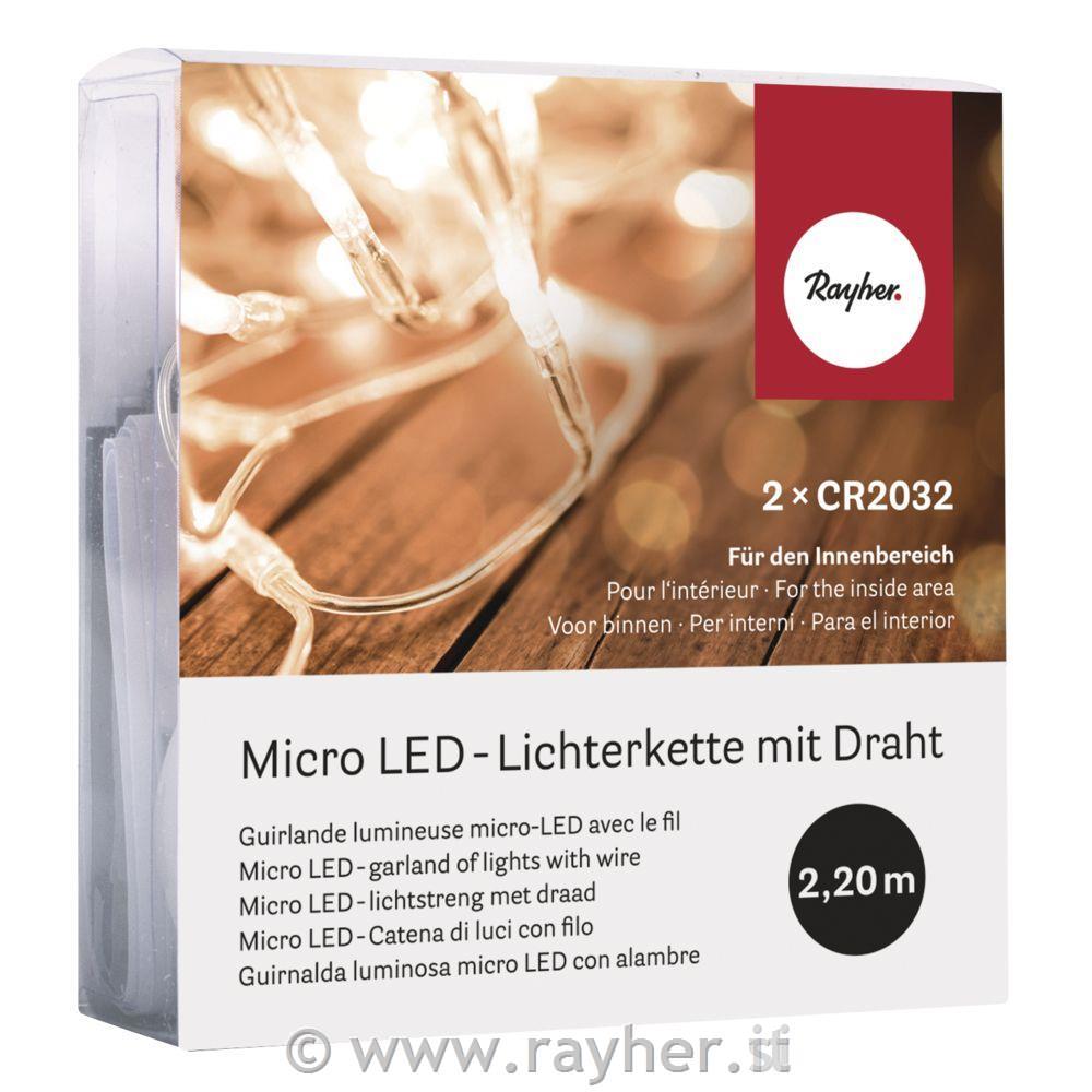 Micro catena luci LED con fil di ferro, 220cm, 20 faretti, box blis. 1pz