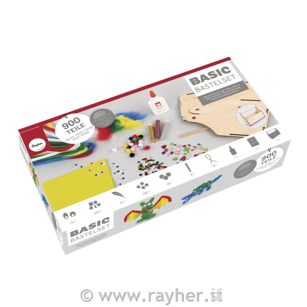 • Basic craft set 900 parts25x12x20cm, with wooden-handle box, box