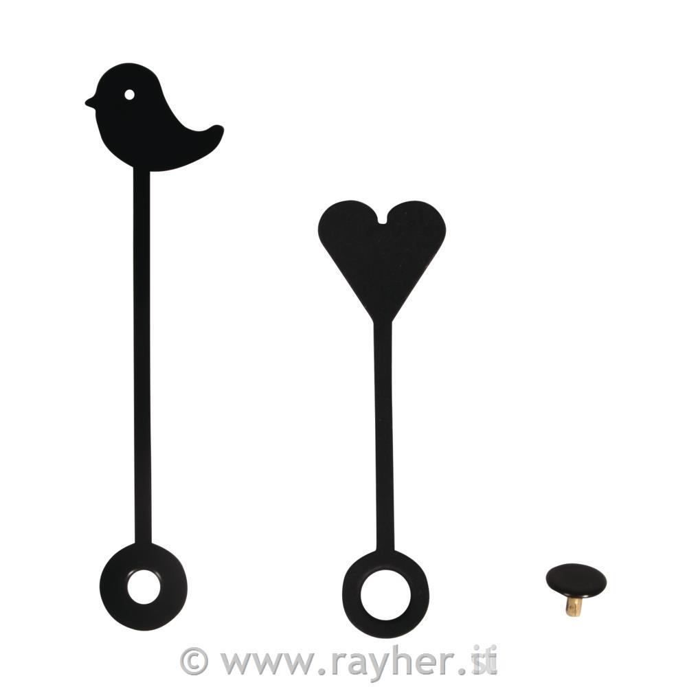 Clock hands Heart & Bird50mm/65mm,+ cover cap, tab-bag 1pcblack