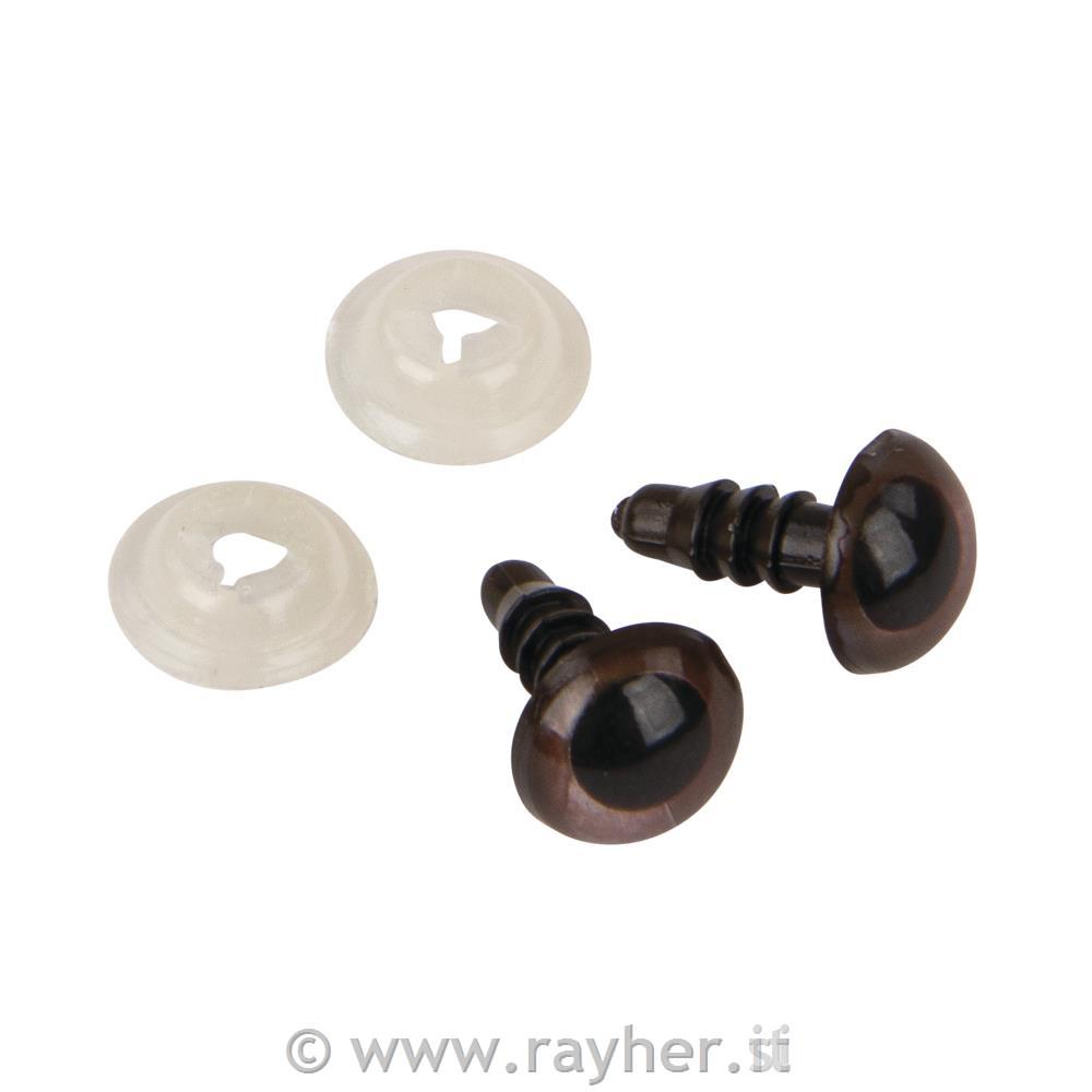 Varnostne ušesce iz plastike, 8 mm o, rjave, s podložkami, 10 kosov