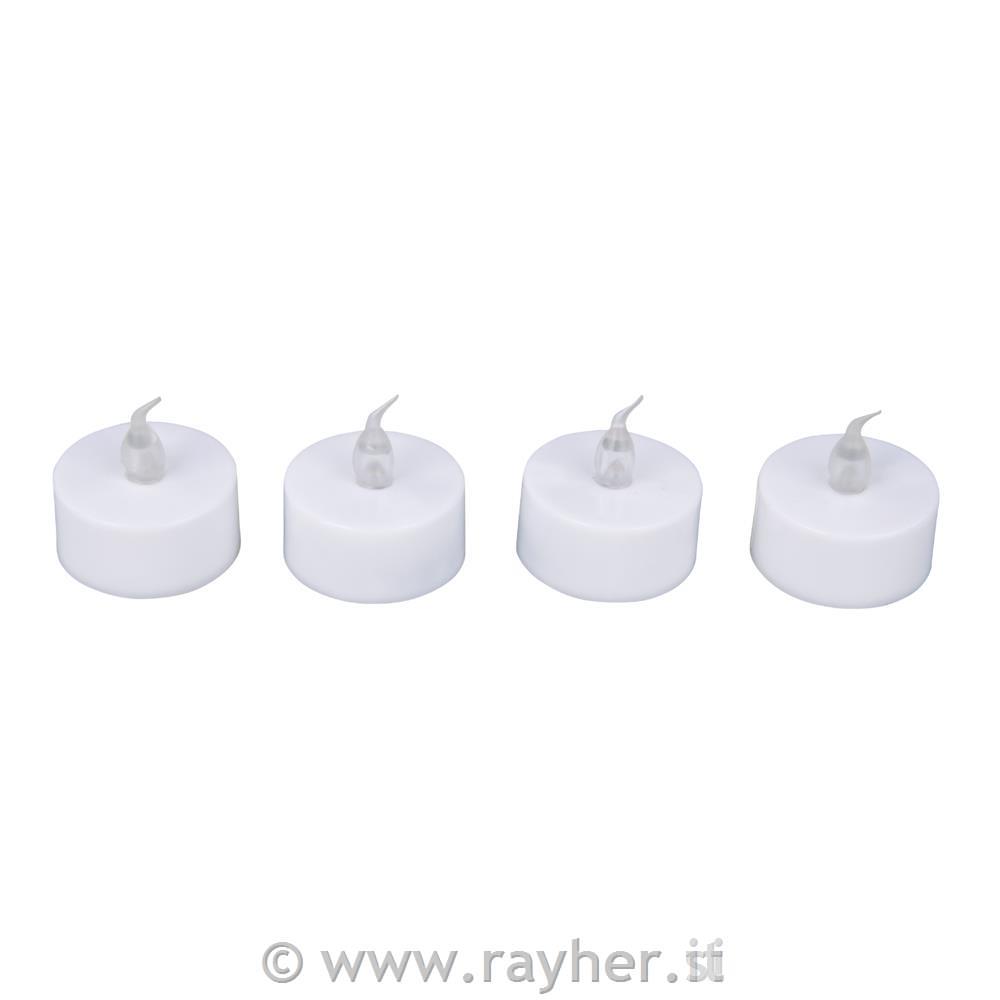 Štiri LED svetilke z utripajočim plamenom so varna alternativa voščenim svečkam. Višina s plamenom je približno 3,8 cm. Vključena baterija CR 2032, 3 -voltna z gumbom za vklop in izklop. Plamen utripa toplo belo. Baterija je zamenljiva. Samo za notranjo uporabo!