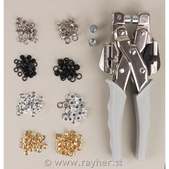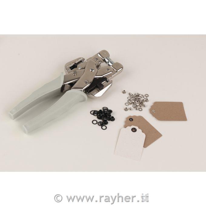 To univerzalno orodje omogoča natančno luknjanje in prileganje kovic z luknjo na široko paleto materialov, vključno s papirjem do 500 g, usnjem, blagom in folijo. Enostavno kot nalašč za kreativne DIY projekte.