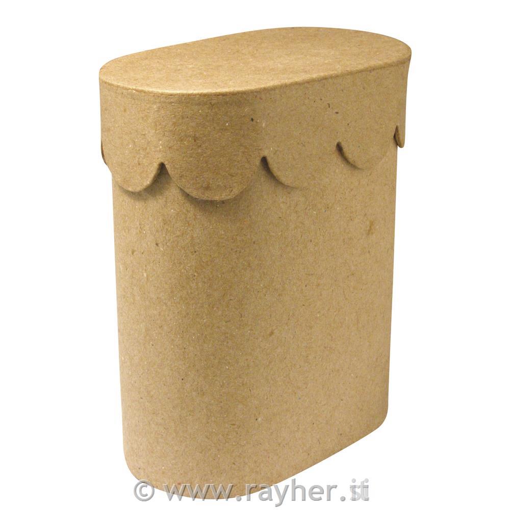 Škatla iz papirne mase, 6x10x12 cm, ovalna, z valovitim pokrovim