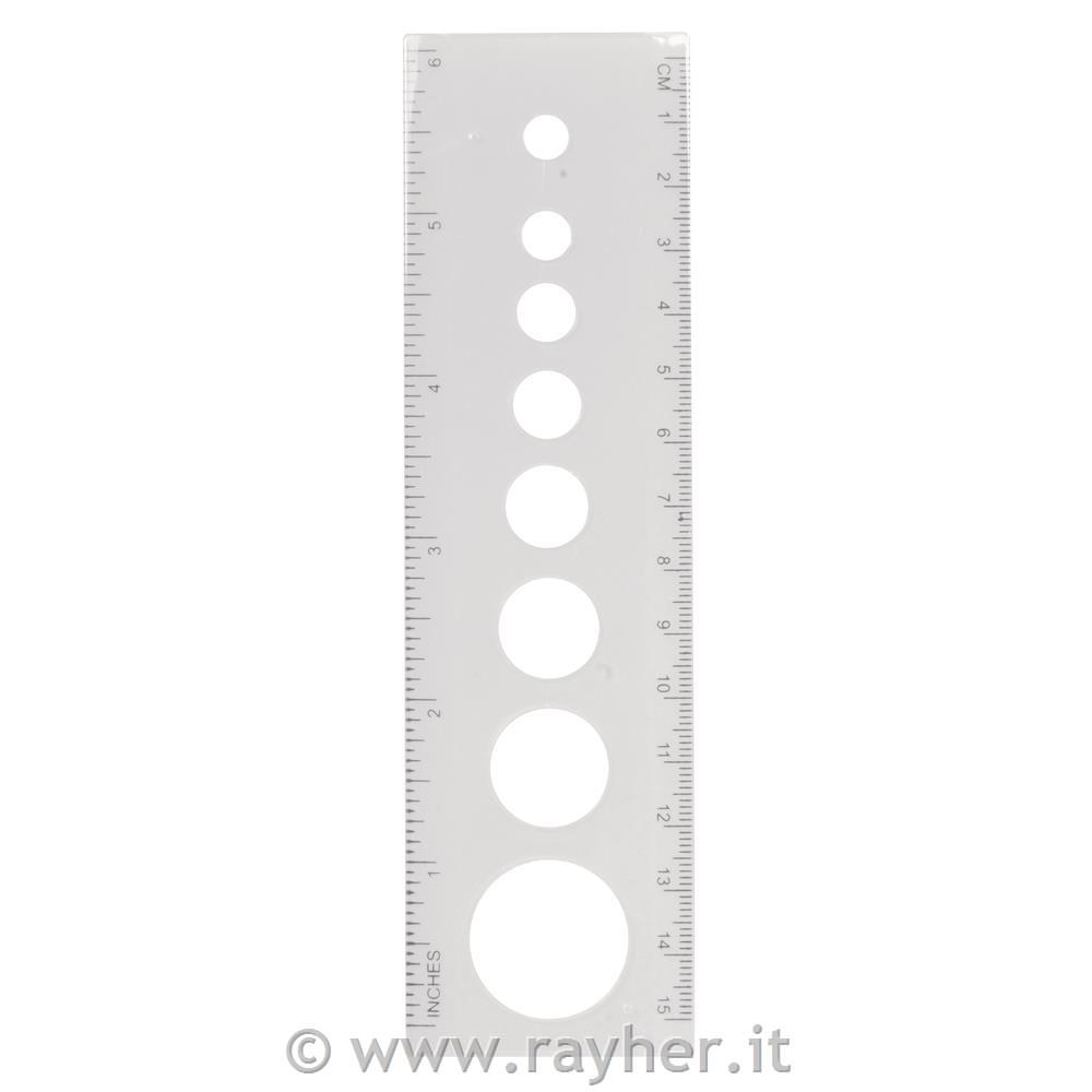 Posebno Quillingovo ravnilo/šablona, je še posebej primerno kot predloga za izdelavo krogov od 0,7 cm do 2,5 cm. V ta namen papirnati trak s pomočjo peresa za quilling (št. izdelka 71935000) oblikujemo v krog in ga na koncu zlepimo z lepilom za papir (št. izdelka 3339600). Oblikovani krog položite v šablono z želeno velikostjo kroga in s čopičem enakomerno nanesite lepilo za papir. Po sušenju krog odstranite s šablone.