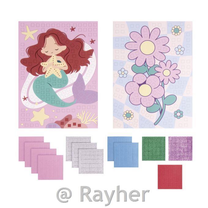 The DIY set Mosaic Sticker „Mermaid + Flower“ contains everything that is needed for making two cool mosaic pictures. The „small stones“ are made of soft foam rubber. Suitable for children from the age of 4 year onwards.