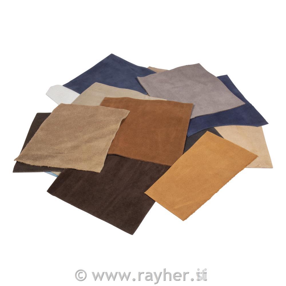 Rezani ostanki semiša, ki so idealni za ročna dela, npr. za manjše šivalne projekte, ovitke za mobilne telefone, majhne torbice, obeske za ključe, denarnice, etuije ali različne okraske.