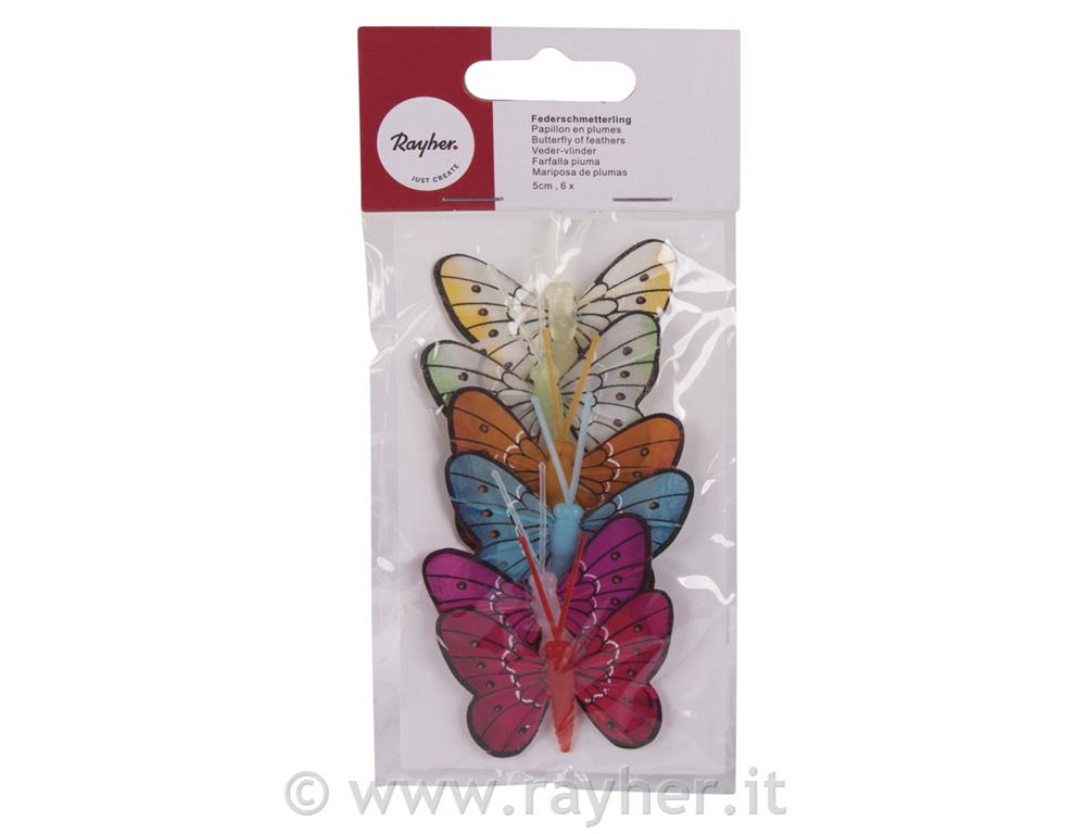 Farfalla piuma5cm, 6 tipi, 6pz