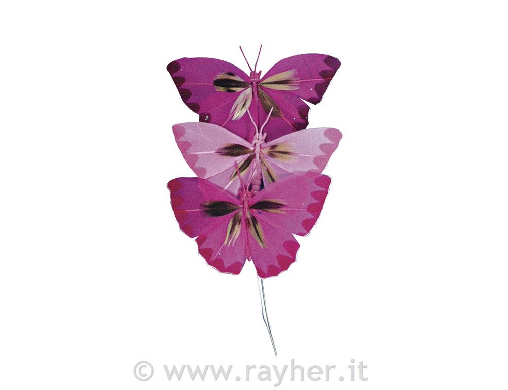 Farfalla di piume, 6 cmbusta 3 pztonalitá fucsia