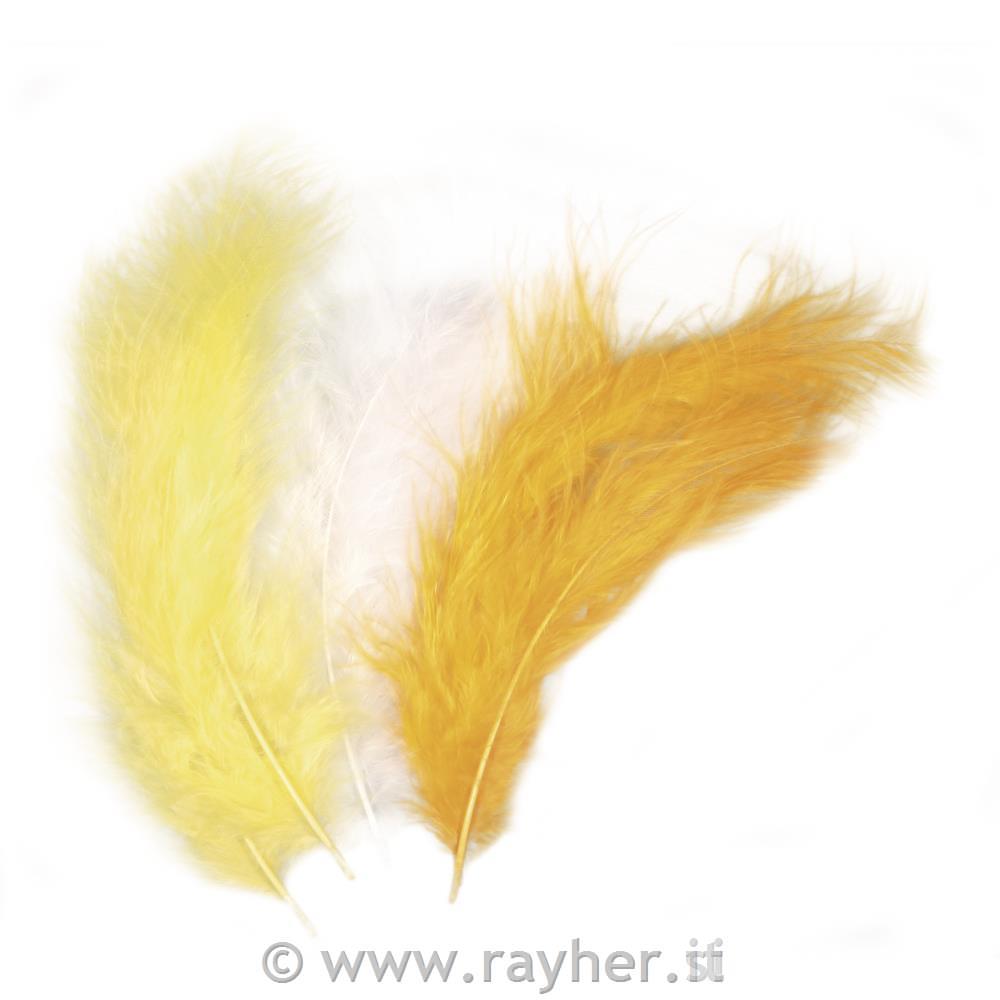 Piume miste10-15cm, busta 15 pzgiallo/bianco/mais