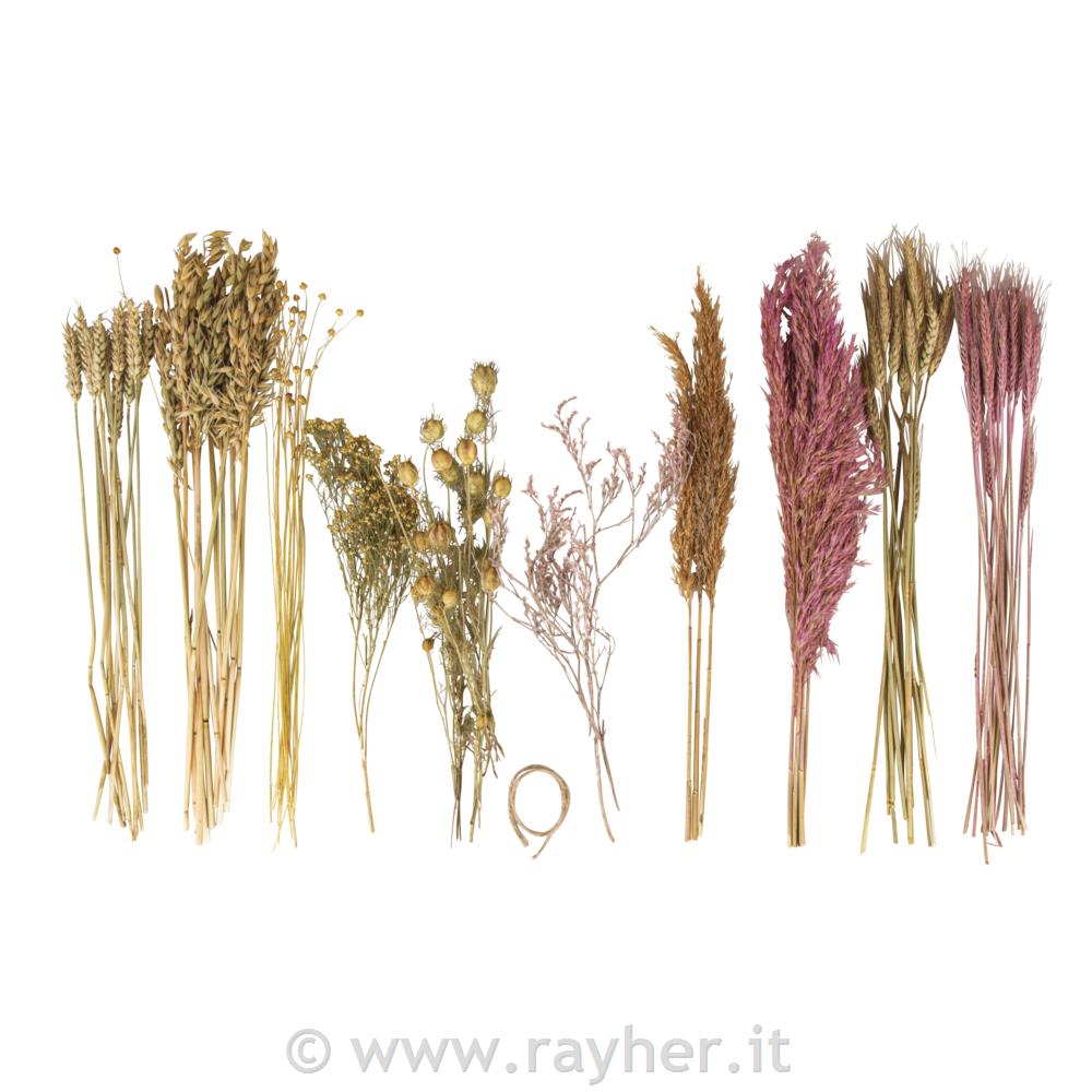 Modna mešanica suhega cvetja iz različnih materialov, ko so pšenica, oves, ličnik, trsni strnad, črna kumina...in druge, bodo napilnile prostor tudi z vonjem po naravno sušenem cvetju in travi.