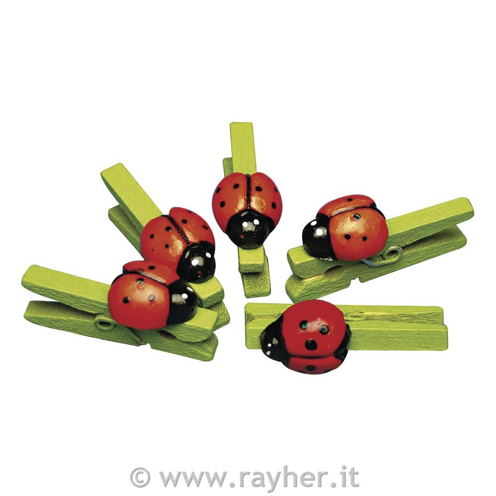 Lesene ščipalke s pikapolonico, 3 cm, 12 kom.