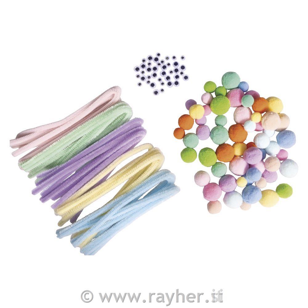 • Set pomponov, kosmatih žičk in očes 125 kosov, pastel