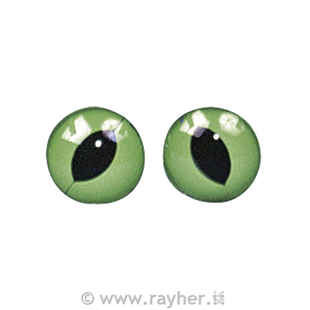 Očesa plastična, mačja, zelene/črne, 10 mm, 10 kom., z zanko za šivanje
