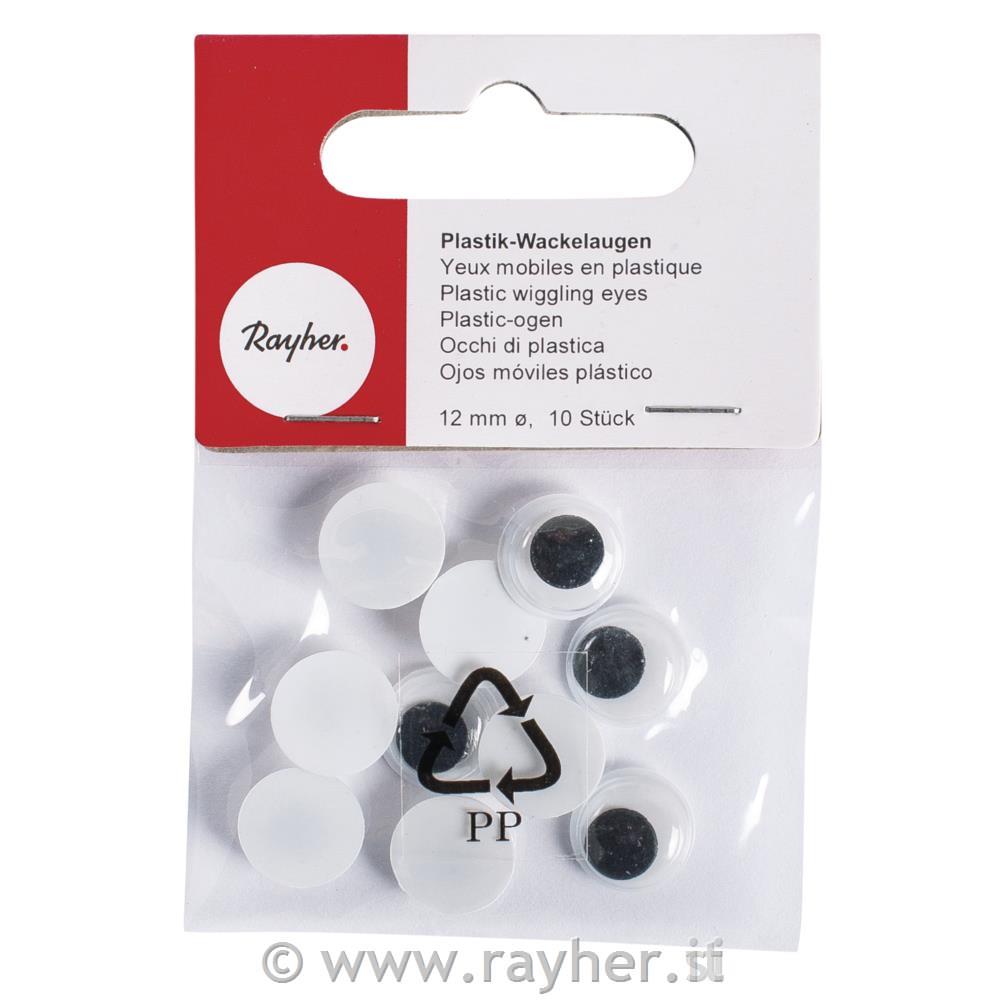 Occhi di plastica con pupilla mobile, 12 mm o, busta 10 pz