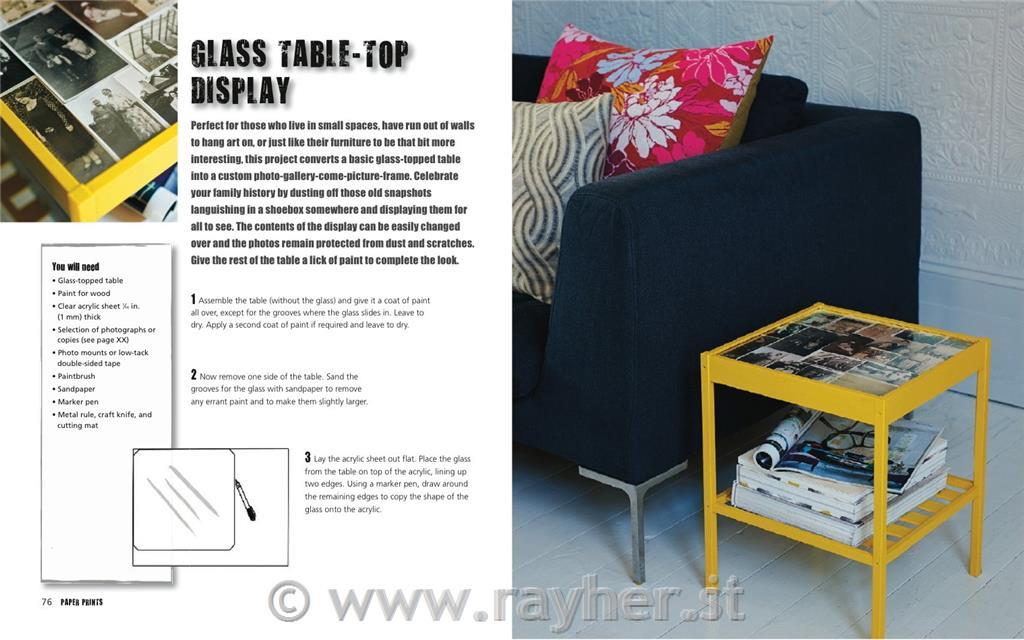 Vsi imamo doma fotografije, ki so nam všeč in jih želimo ohraniti, vendar vse prepogosto ležijo skrite v paketih ali na digitalnem trdem disku, kjer jih ne vidimo in v njih ne uživamo. Ellie Laycock želi s to knjigo te slike spraviti iz teme in vas naučiti, kako jih uporabiti za ustvarjanje čudovitih novih stvari za dom ali personaliziranih daril za ljubljene osebe, tako da bodo te posebne slike dobile priložnost, da zasijejo. Odkrijte, kako uporabiti stare diapozitive za okrasitev oken in kako jih natisniti na tkanino ter ustvariti edinstveno torbo ali denarnico. Spoznajte načine uporabe papirnatih odtisov, od prenosa slik na keramiko do okrasitve namiznih površin. Vključeni so tudi nenavadni načini uokvirjanja fotografij - zakaj ne bi poskusili uporabiti starih starinskih ohišij za ure kot okvirjev za slike z zapestnicami? Vse tehnike, ki jih boste potrebovali, so jasno razložene, zato je knjiga idealen vir navdiha za nove in izkušene rokodelce.