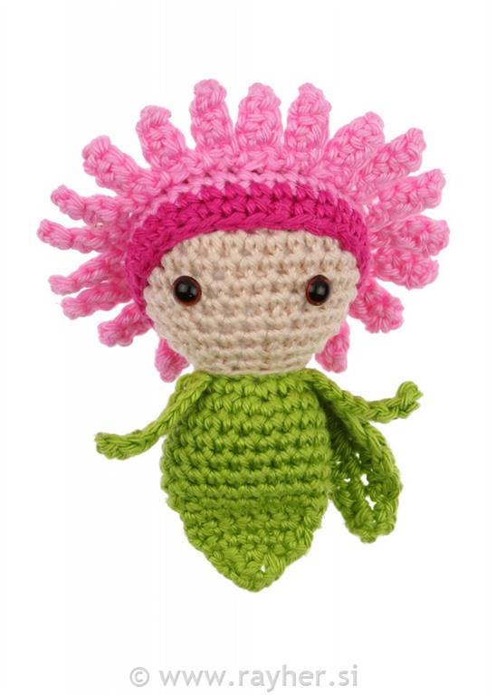 Izbirate lahko med 12 različnimi cvetovi, med katerimi so Samova sončnica, Hugova hortenzija, Adamov allij in Dianina narcisa, vsi s kričečimi cvetnimi listi in prijaznimi obrazi. Vsi cvetlični dojenčki uporabljajo enak preprost vzorec telesa, ki mu dodajo značilne, pisane cvetne lističe in liste. Vse uporabljene tehnike in šivi so jasno prikazani, knjiga pa vsebuje tudi priročen vodnik za branje vzorcev.