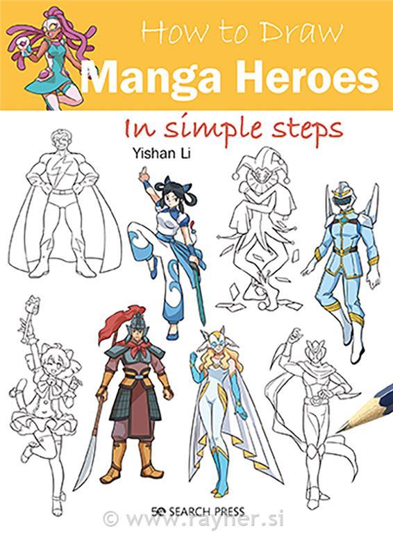 Impara a disegnare 28 eroi e cattivi manga dinamici usando questo semplice libro passo dopo passo.