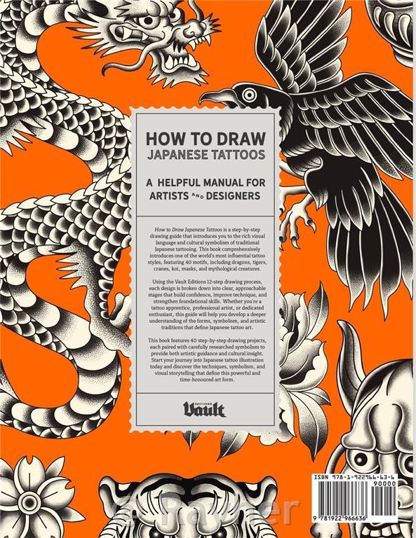 Vsak dizajn je razčlenjen z 12-stopenjskim postopkom risanja Vault Editions, zaradi česar so kompleksne kompozicije dostopne, ponovljive in idealne za krepitev samozavesti in spretnosti. Ne glede na to, ali ste vajenec tetoviranja, profesionalni umetnik ali navdušenec nad risanjem, je ta vodnik zasnovan tako, da poglobi vaše tehnične sposobnosti in kulturno razumevanje tradicionalne japonske umetnosti tetoviranja.