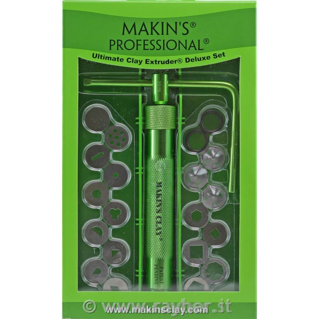 Stiskalka Makin's® Professional™ Ultimate Clay Extruder™ Deluxe Set - popoln komplet naslednje generacije Makinovega patentiranega vijačnega iztiskalnika, 15 najbolj priljubljenih modelov diskov in 3 velikosti adapterjev Claycore v priročnem trdnem kovčku za shranjevanje.
