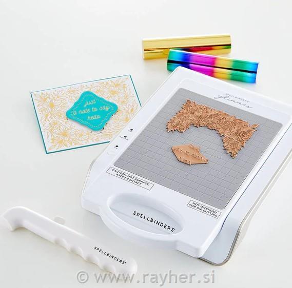 Il sistema Glimmer Hot Foil ora include finiture in platino che si coordinano con le macchine fustellatrici Spellbinders® Platinum™ e Platinum 6™ e uno strumento di sollevamento magnetico per una maggiore facilita d'uso. Con il nuovo e migliorato sistema Glimmer Hot Foil, puoi migliorare i progetti su carta con dettagli in lamina sorprendenti e accattivanti. Il sistema Glimmer Hot Foil e progettato per l'uso con fustellatrici.