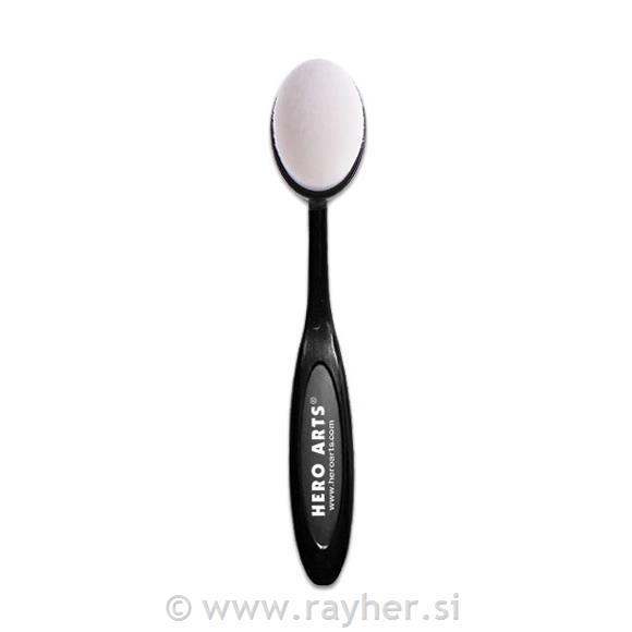 Popoln čopič za senčenje s črnili na vodni osnovi na voščilnicah in ostalih projektih. Drobna bela ovalna glava čopiča in ergonomsko oblikovan ročaj omogočata gladko mešanje ozadja. Čistite z nežnim milom in vodo ter pustite, da se posuši na zraku. Glava čopiča meri 2.5cm x 4cm