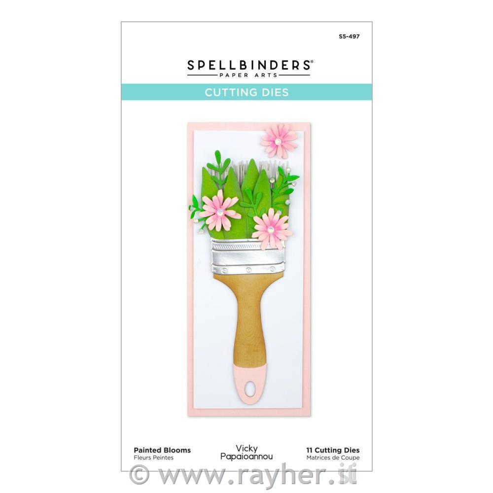Komplet 11 rezalnih šablon vključuje osnovo čopiča, ščetine, cvetove in njihova središča ter več motivov listov in vejic.