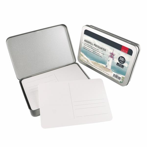 24 akvarelnih razglednic z vnaprej natisnjenimi naslovnimi vrsticami formata DIN A6 (10,5 x 14,8 cm) v srebrni pločevini. Naravni beli akvarelni papir (300 g) je fino strukturiran, brez kislin in odporen na svetlobo.