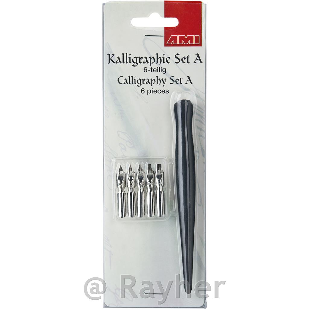 Set vključuje leseno držalo za kaligrafske konice, dolžine 13,5 cm, ter 5 konic, velikosti: 1,2,3,4,5 Idealen osnovni komplet za začetnike kaligrafske umetnosti.