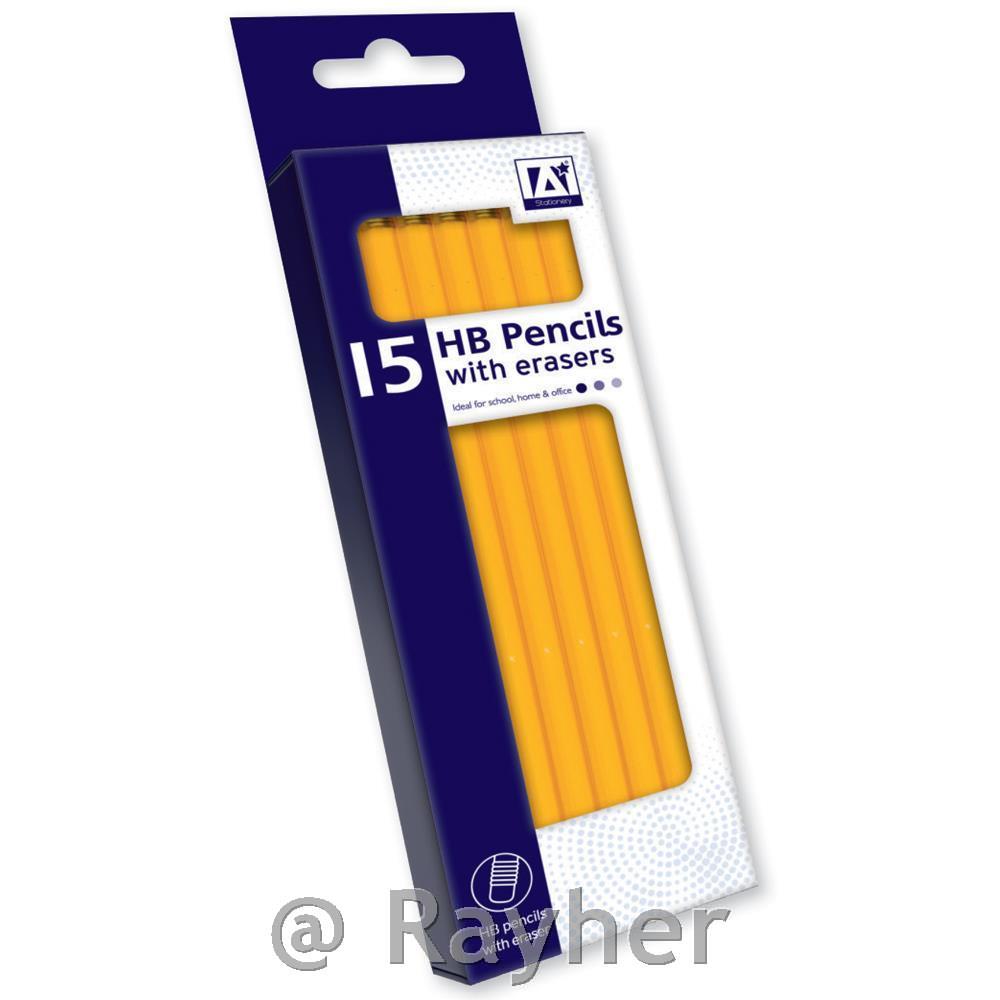 La confezione contiene 15 matite con durezza HB con gomma.