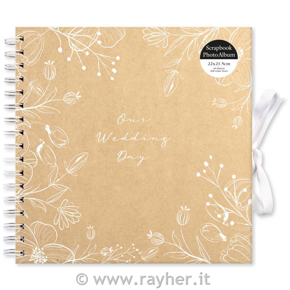 Elegantni scrapbook fotoalbum “Our Wedding Day” je popoln za ohranjanje najlepših spominov na vajin poročni dan. Trde kraft platnice s subtilnim belim cvetličnim motivom in spiralna vezava mu dajejo naraven, romantičen videz.