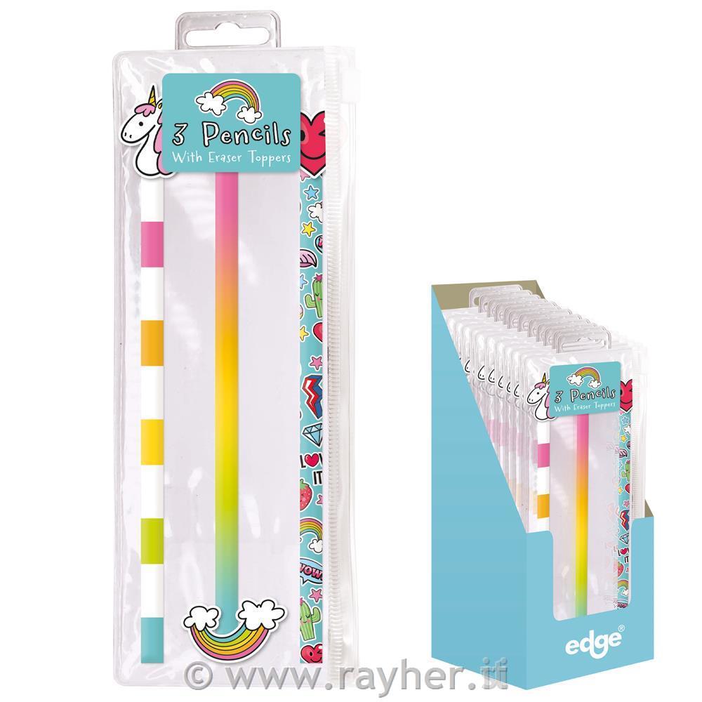 Svinčniki z radirko, mavrični – set 3
