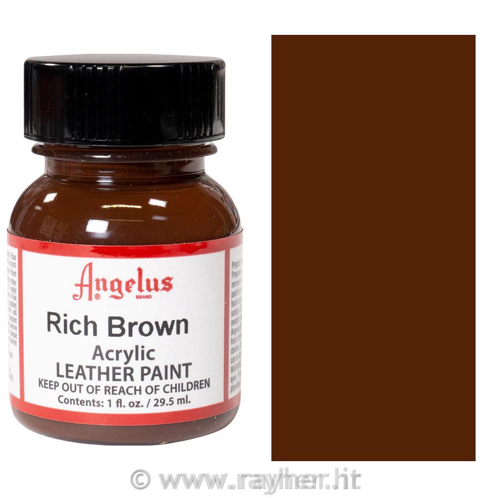 Angelus je akrilna barva za usnje,ki ne poči in se ne lušči, če je ustrezno pripravljena in nanešena na usnje. Ko se popolnoma posuši, je barva za usnje Angelus popolnoma vodoodporna.