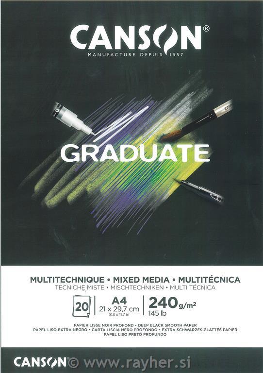 Skicirka Graduate Mixed Media Black A4 240 g, 20 listna