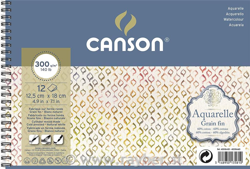 • Blok akvarelni spirala Aquarelle Canson 12,5x18 cm 300 g, 12 listni; Cold Presse