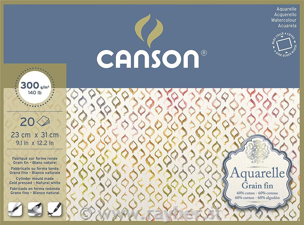 Blok akvarelni Aquarelle Canson 23x31 cm 300 g, 20 listni, Cold Pressed