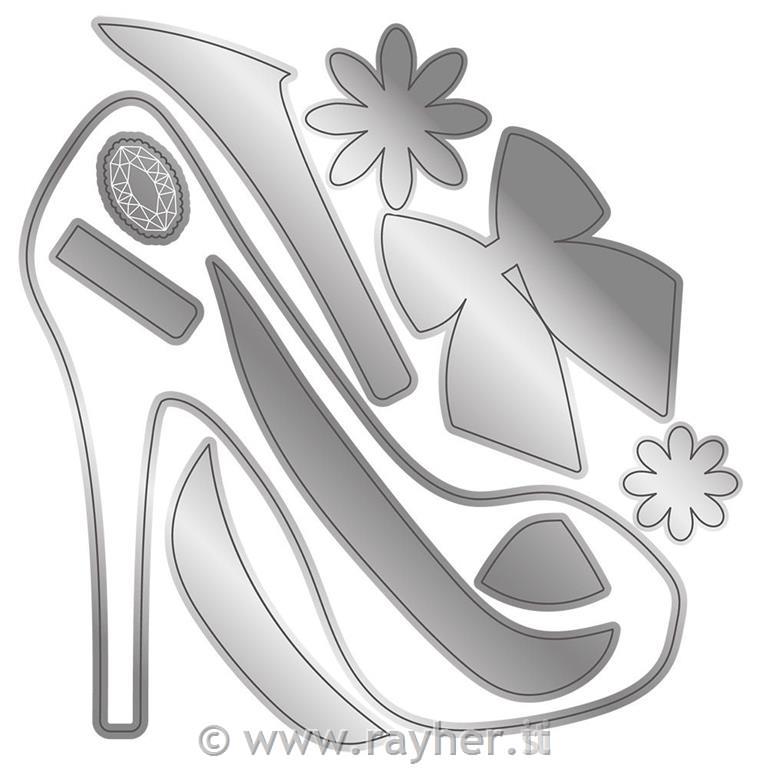 Komplet If the Shoe Fits vključuje 10 rezalnih šablon za ustvarjanje voščilnice oblikovane kot eleganten čevelj z visoko peto. Prejeli boste tudi rezalne šablone za dodajanje podrobnosti, kot so trakovi, cvetlični okraski in drugo.
