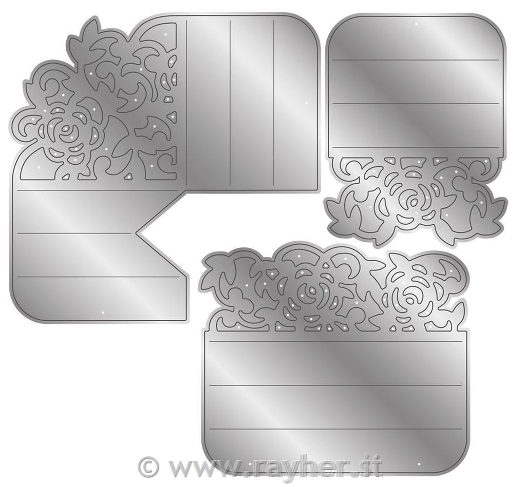 Komplet 3D Concertina Border Vines vsebuje 3 rezalne šablone za ustvarjanje okvirja, napolnjenega z zapletenim izsekanim čipkastim vzorcem. Komplet vključuje 2-palčni vogalni izsek, 2-palčni stranski izsek in 3-palčni stranski izsek, tako da lahko izdelate prilagojen okvir, ki bo ustrezal vsaki velikosti voščilnice, ali pa uporabite samostojne vogalne izseke.