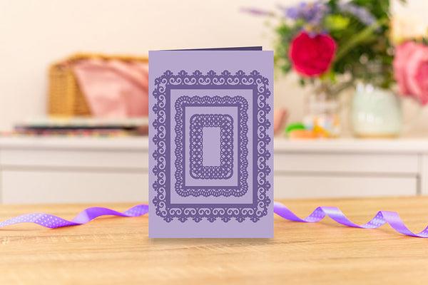 V kompletu Nesting Die - Antique Frames so tri rezalne šablone; čipka krogi. Velikost največje: 9.9cm x 12.7cm
