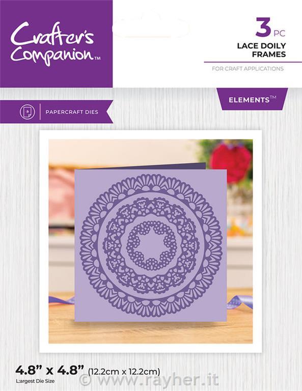 V kompletu Nesting Die - Lace Doily Frames so tri rezalne šablone; čipka krogi. Velikost največje: 12.2cm x12.2cm
