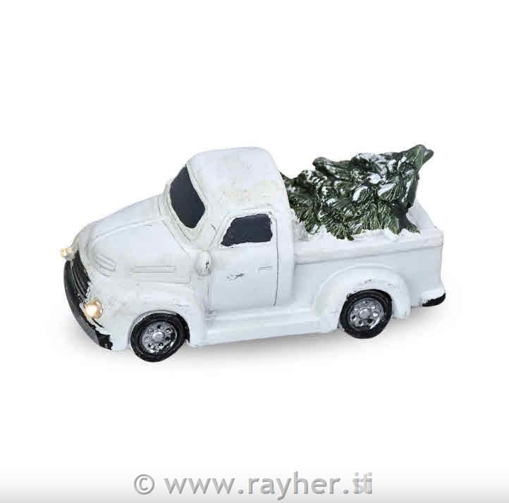 Zasnežen pol-tovornjak s smreko, bel, z LED lučko