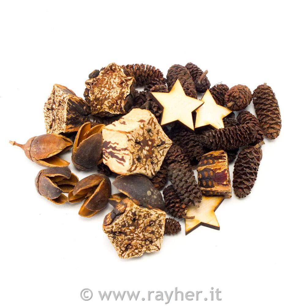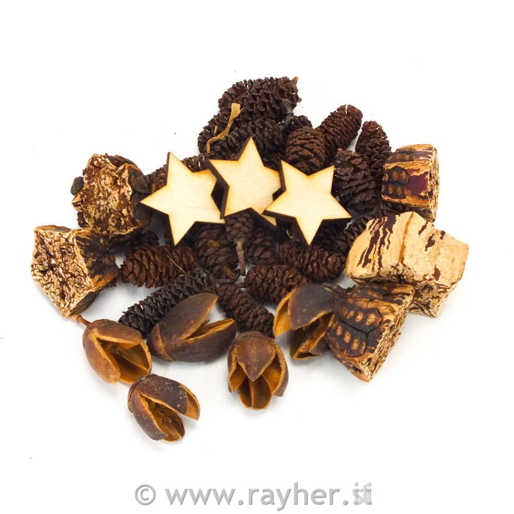 Paket za dekoracijo vsebuje različne naravne plodove in dodatne dekorativne izdelke, ki bodo popestrile vsak vaš aranžma.