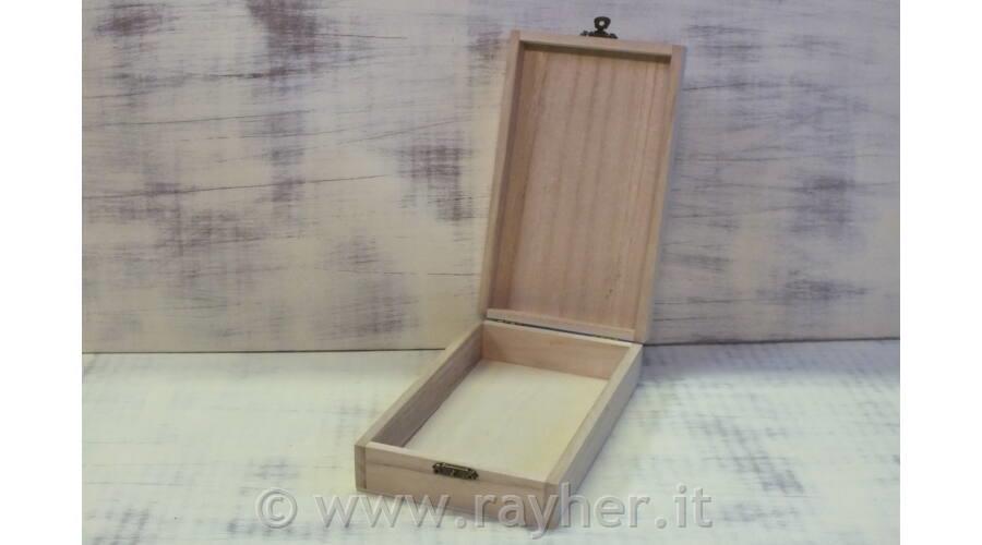 Notranje mere lesene škatle so 10,7x18,5x2.8 cm.