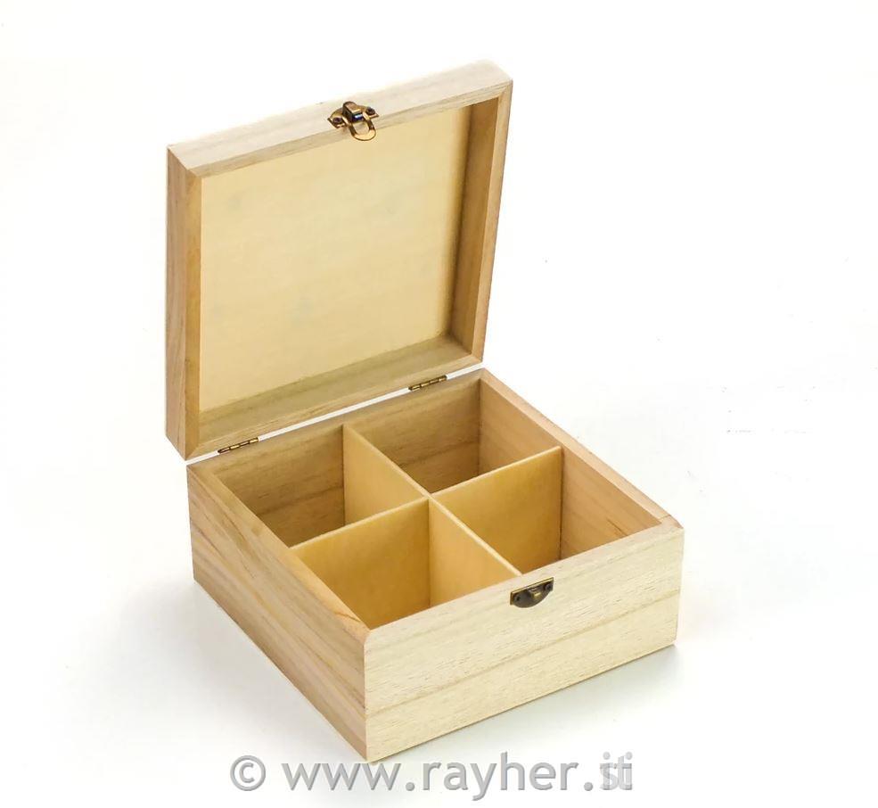 Lesena škatla za čaj, 15x15x8 cm 4 predelki